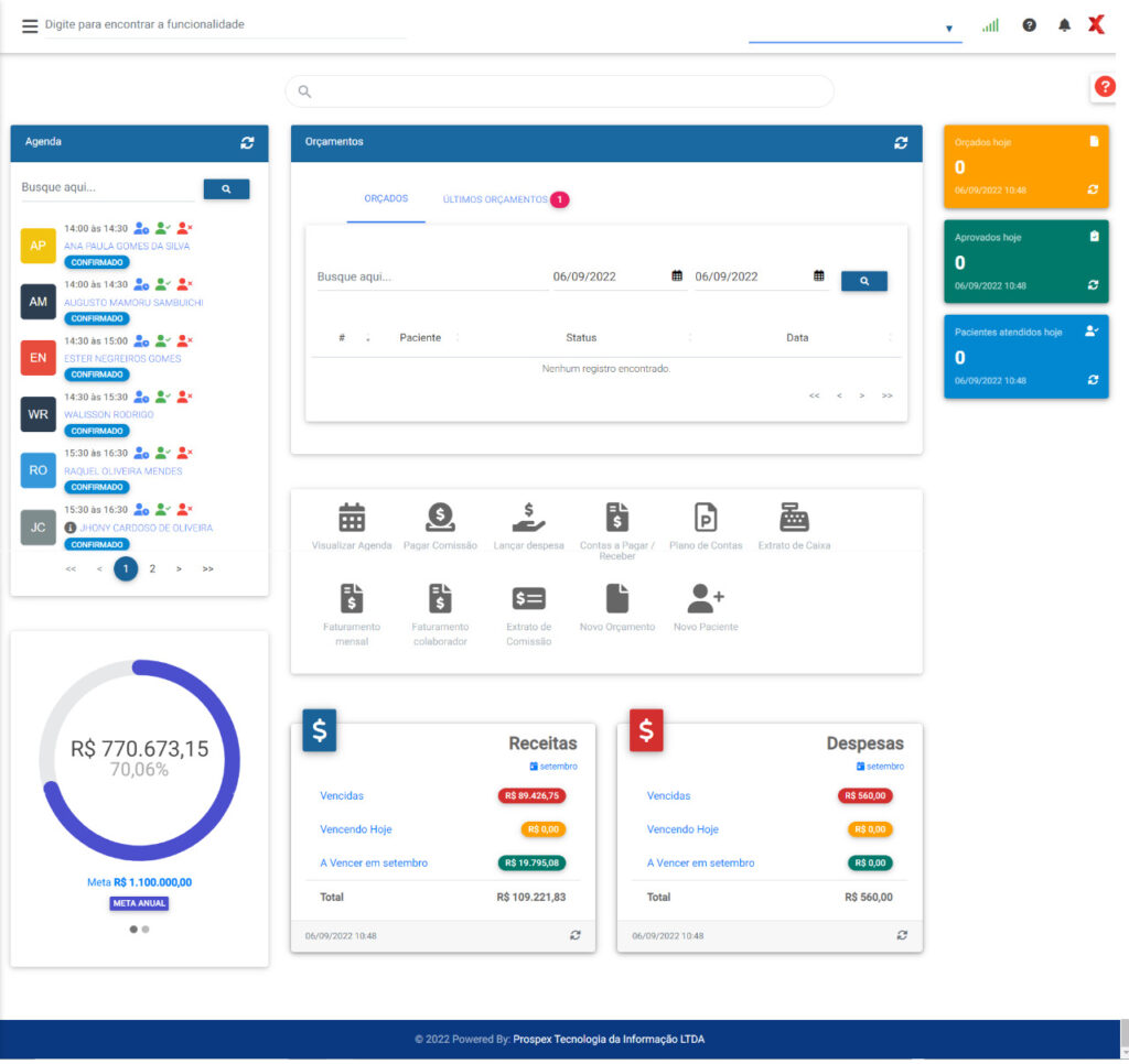 Orçamentos rápidos com odontograma, tabelas de preço e políticas.